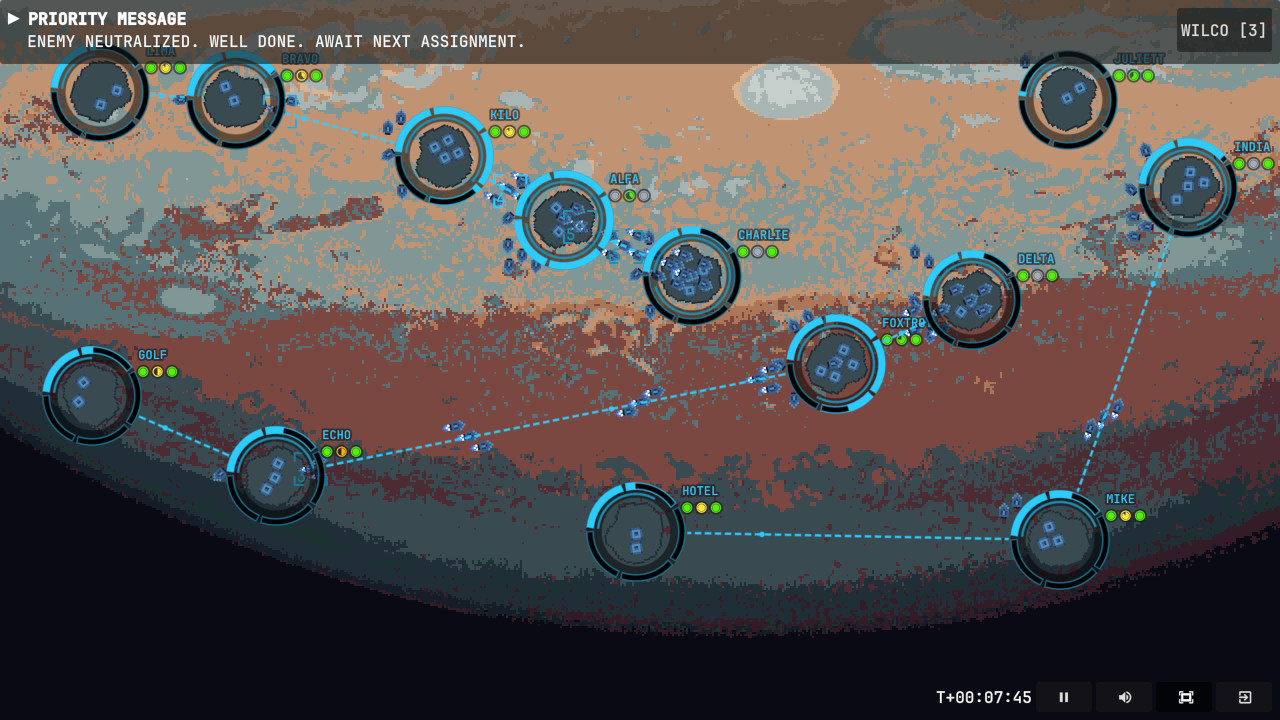 Command operations in treacherous asteroid fields. Set flight routes and production priorities in this 2D indirect-control RTS. Success isn't about speed—it’s about the plan.